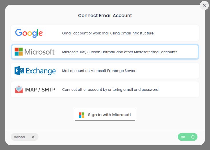 With our new update, you can connect your Microsoft-based e-mail addresses to Cubicl.