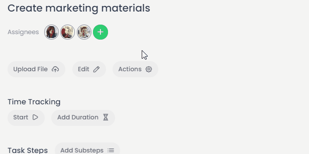 You can add assignees with the "+" button in the Assignees field. The users you select from the selection menu will be added to the relevant task as an assignee. If you want to delete the assignee, you can click on the small red cross button on the top right of their profile photo.