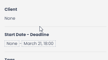 You can add clients to tasks or delete existing clients by clicking the pencil icon in the client field. When you click on any place outside the menu, your changes will be saved.