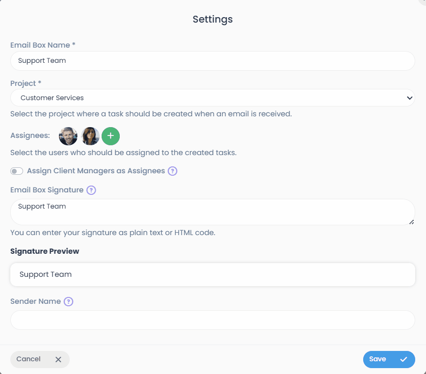 Assigning Client Managers as Assignees: Client managers can be determined on the client detail page. Previously, client managers were only added as assignees to support requests. If this setting is enabled, client managers will also be added as assignees when an email task is created.