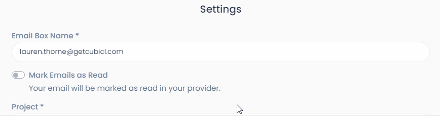 Mark Emails as "Read": Previously, emails created as tasks in Cubicl were directly marked as read in the user's email provider. This setting is now left to the user's discretion. If the user does not select this option, the email will remain marked as unread in their email provider. After this update, your email box settings are set to active by default.